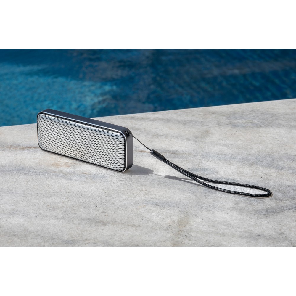 Erleben Sie den Kabellosen Lautsprecher in Premium-Qualität – der ideale Werbeträger für Ihre Marke. Mit einem Gewicht von nur 140 g und kompakten Abmessungen (4,5 x 12,5 x 1,8 cm) passt er mühelos in jede Tasche und wird so zum ständigen Begleiter Ihrer Kunden. Hergestellt aus hochwertigem Aluminium und PU, bietet dieser Lautsprecher nicht nur exzellenten Klang dank des 10-Watt-Treibers, sondern auch die Möglichkeit zur TWS-Stereo-Paarung für voller Sound während großer Events.